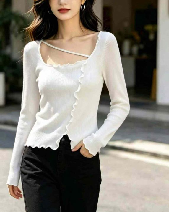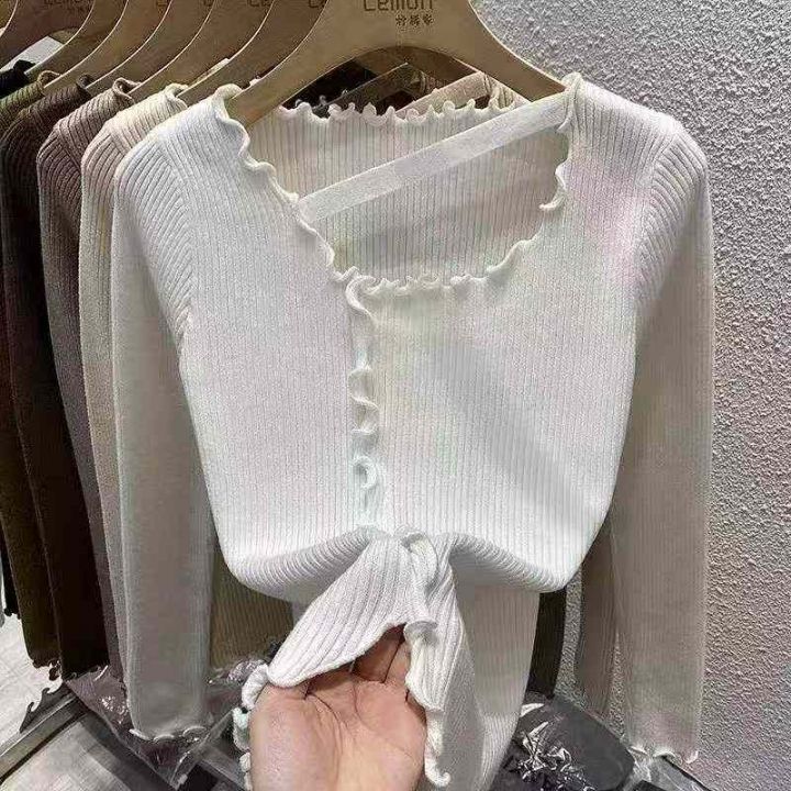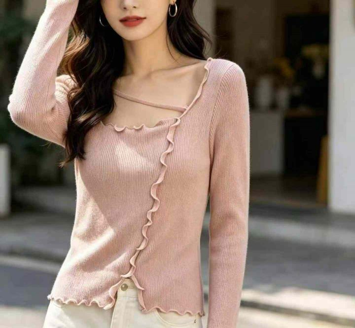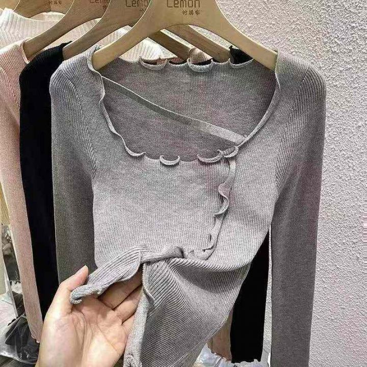 秋冬新款网红爆款方领木耳边开叉针织套头毛衣,独立包...