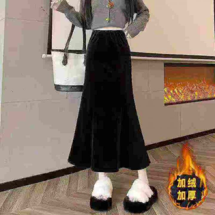 1238件半身裙金丝绒鱼尾裙修身显瘦包臀秋冬装光泽垂感松紧腰高腰长裙,单款两色 黑色为主,两种长度:过膝中长款 长款到脚面,长短款各半 加绒不加绒各半,码数S-3XL码 独立包装。