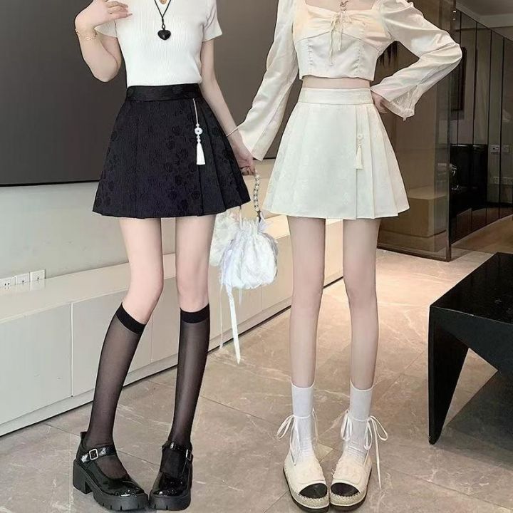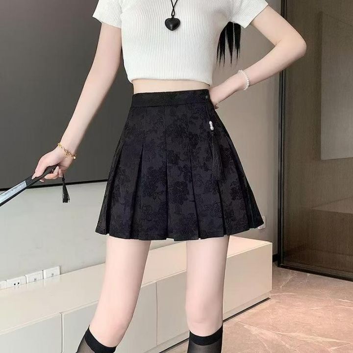 上新全清:12.8一件新中式提花高腰显瘦百褶半身裙,[...