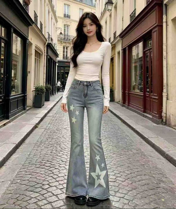 春季新款高弹力千禧辣妹微喇显瘦设计感小众牛仔长裤,独立包装带腰卡,码数...