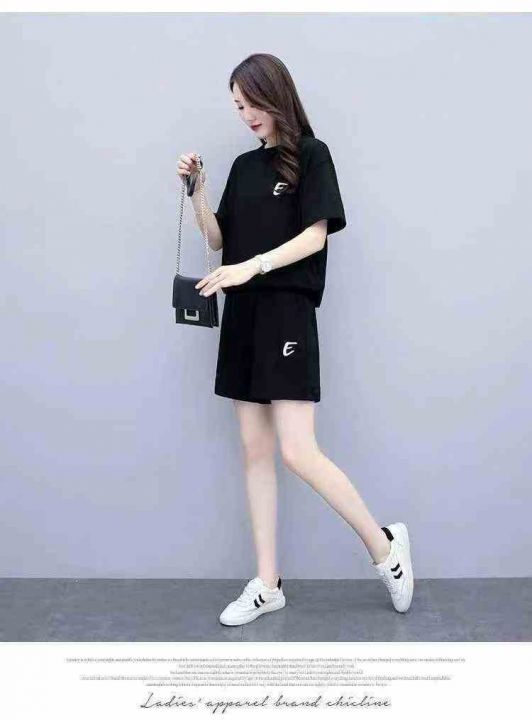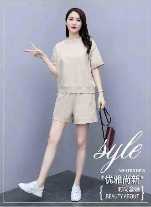 高级感短袖短裤两件套女士夏季大码欧货时尚洋气休闲穿搭套装,独立包装,码数1-6码,数量413套,分货加1 独立包装(货号420#19)