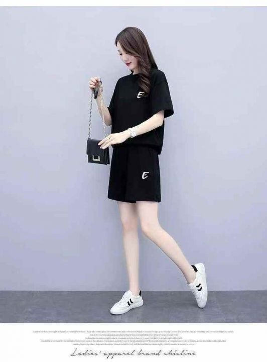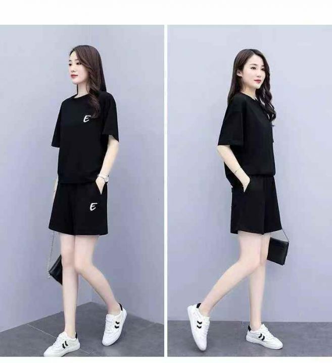 高级感短袖短裤两件套女士夏季大码欧货时尚洋气休闲穿搭套装,独立包装,码数1-6码,数量413套,分货加1 独立包装(货号420#19)
