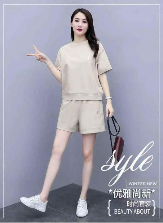 全清价9.5高级感短袖短裤两件套女士夏季大码欧货时尚...
