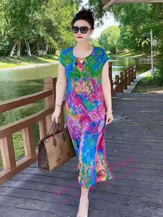 2026夏季新款时尚双绉连衣裙气质洋气减龄宽松长裙子 120条 2-5码 独立包装419#18