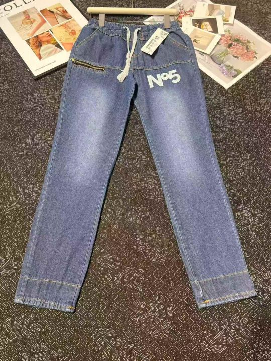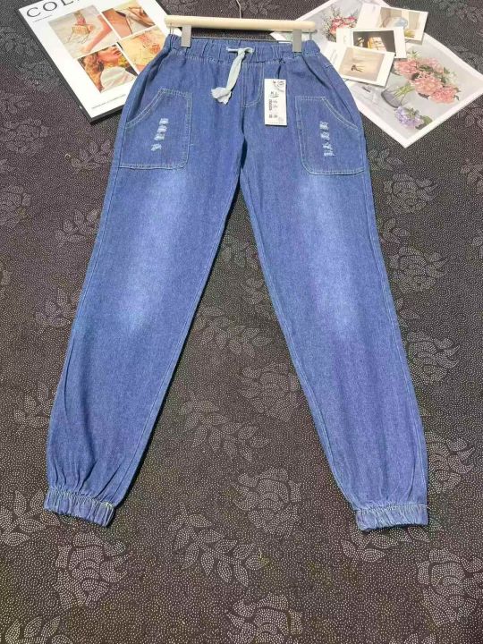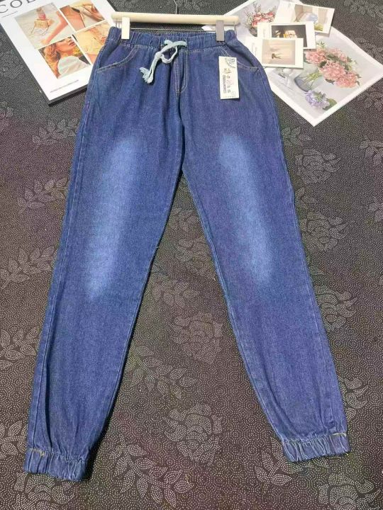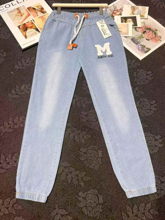 女士束脚直筒松紧腰牛仔裤 334件,全清12.8元,正品独立包装,码数:M到XXL,松紧腰束脚牛仔裤女春秋薄款 宽松显瘦哈伦裤休闲运动老爹裤