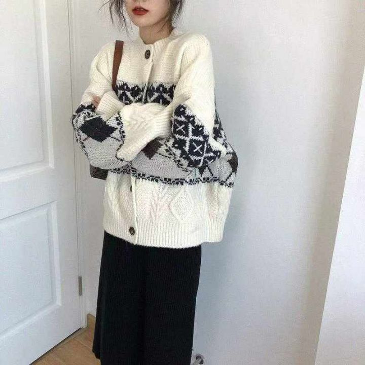 捡漏款,秋冬新款高品质英伦风菱格宽松慵懒风加厚提花毛衣开衫,独立包装,均码面料软糯舒适有弹力,85件左右,全清8.9元超低价秒杀!