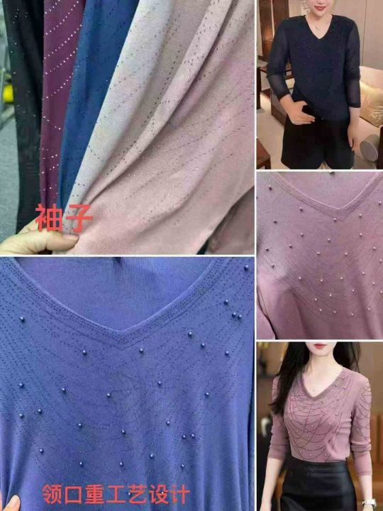全清6.9元韩版V领钉珠烫钻长袖T恤女款 1913件 1-7码 ...