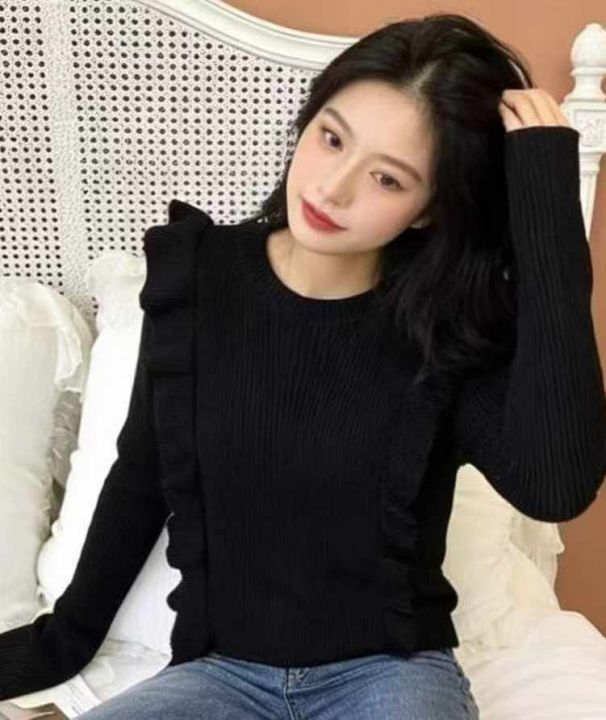 春季新款复古法式宽松百搭显瘦木耳边设计款圆领套头毛衣,独立包装带吊牌,码数S--XL码,面料软糯厚实弹力大,164件,全清6.9元超低价秒杀!