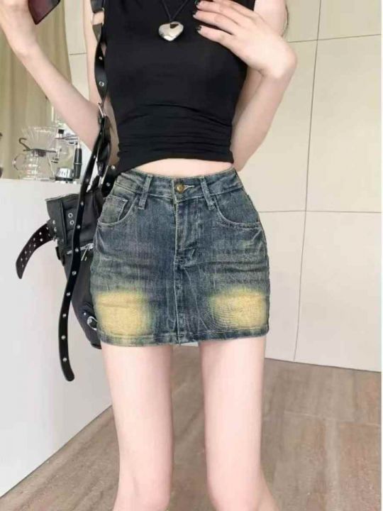 美式复古高腰牛仔半身裙女夏季新款辣妹包臀短裙子潮10...