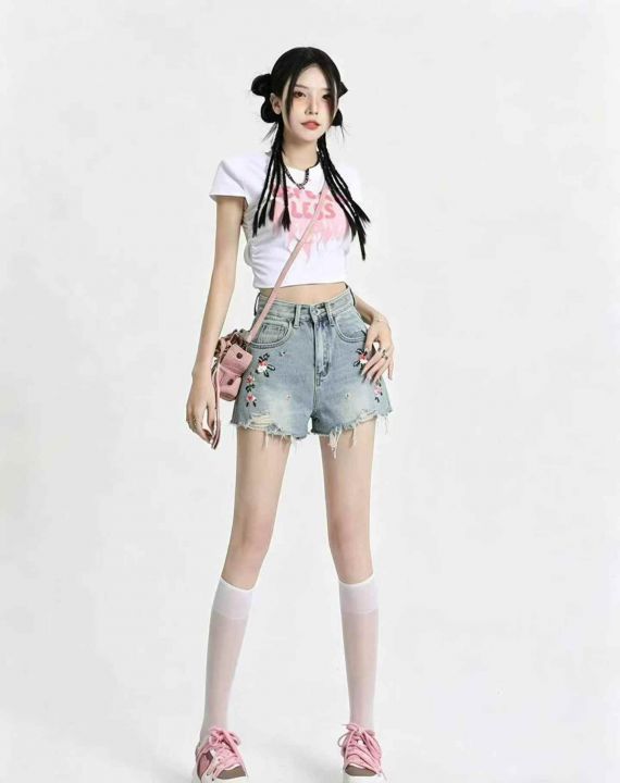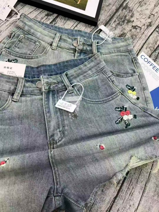 高腰弹力重工刺绣牛仔短裤女夏季新款显瘦小众设计感短裤111条全清9.8元,码数S到XL,正品独立包装,图5有码数清单,单款深浅2色[庆祝][庆祝][庆祝]
