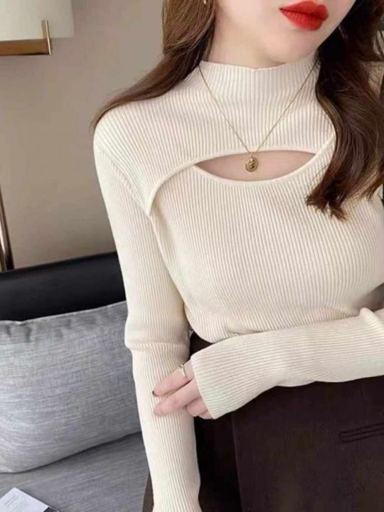 春季新款网红复古镂空设计款包芯纱长袖套头毛衣,独立...
