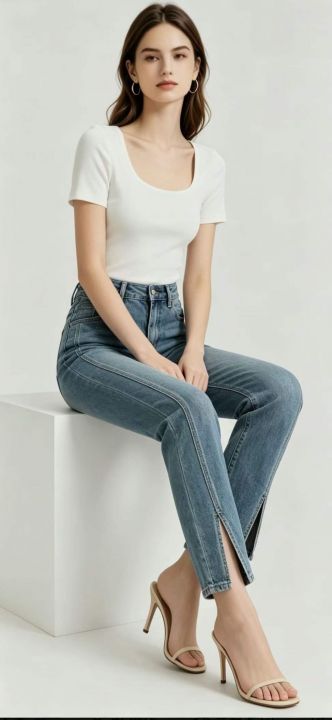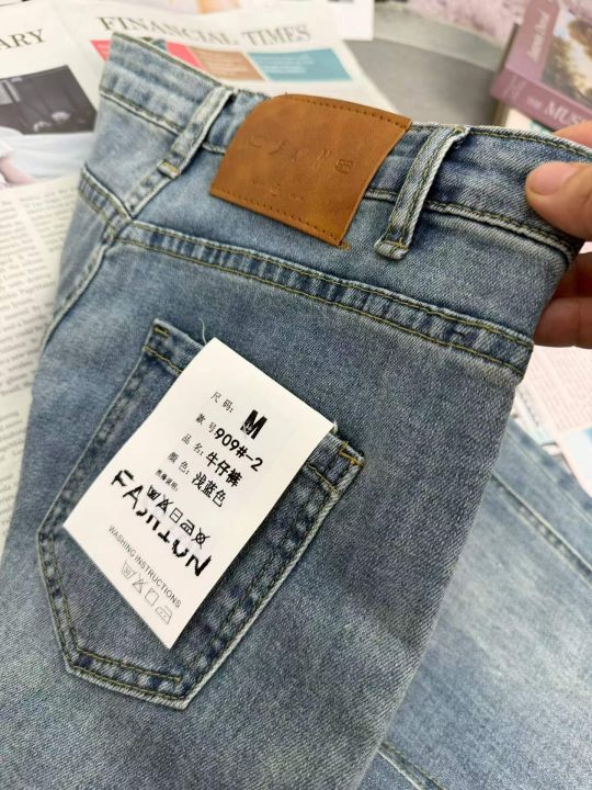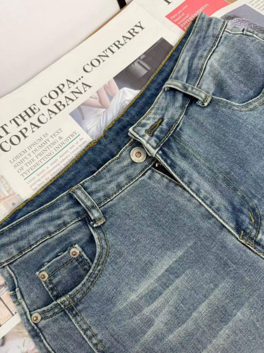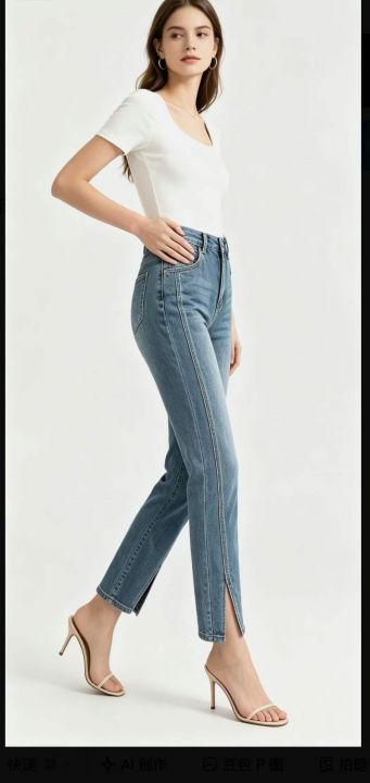 高腰弹力女士烟管牛仔裤,单款单色,独立包装,数量10...