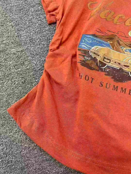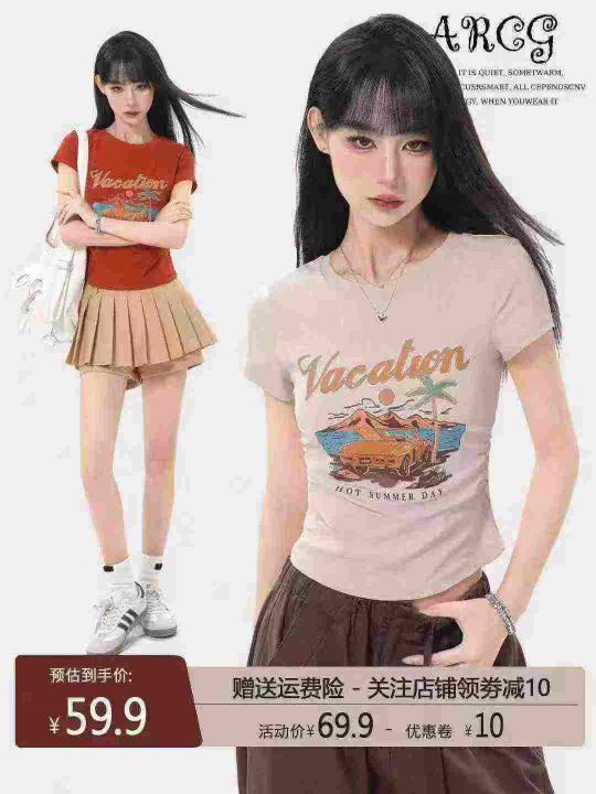 ☕️美式复古正肩短袖t恤夏季不规则设计感高腰收腰短款修身辣妹上衣纯棉500件全清5.8元分货6.8元,码数S到XL,高弹力,大货橘色多,超低价秒杀[庆祝][庆祝][庆祝]