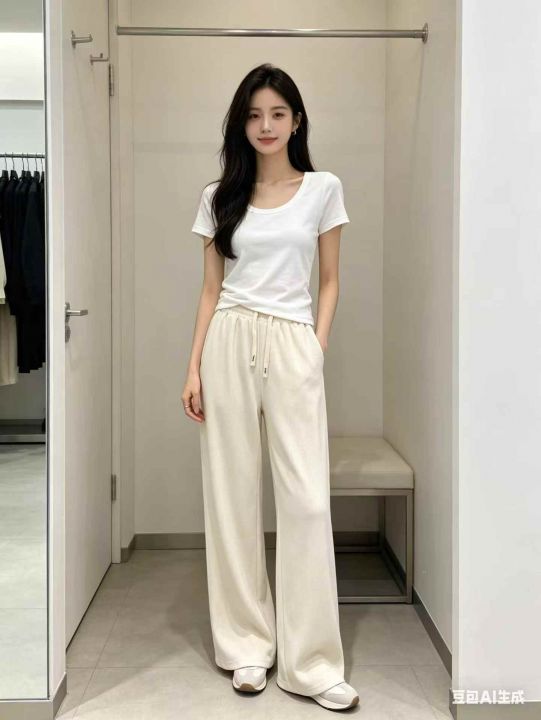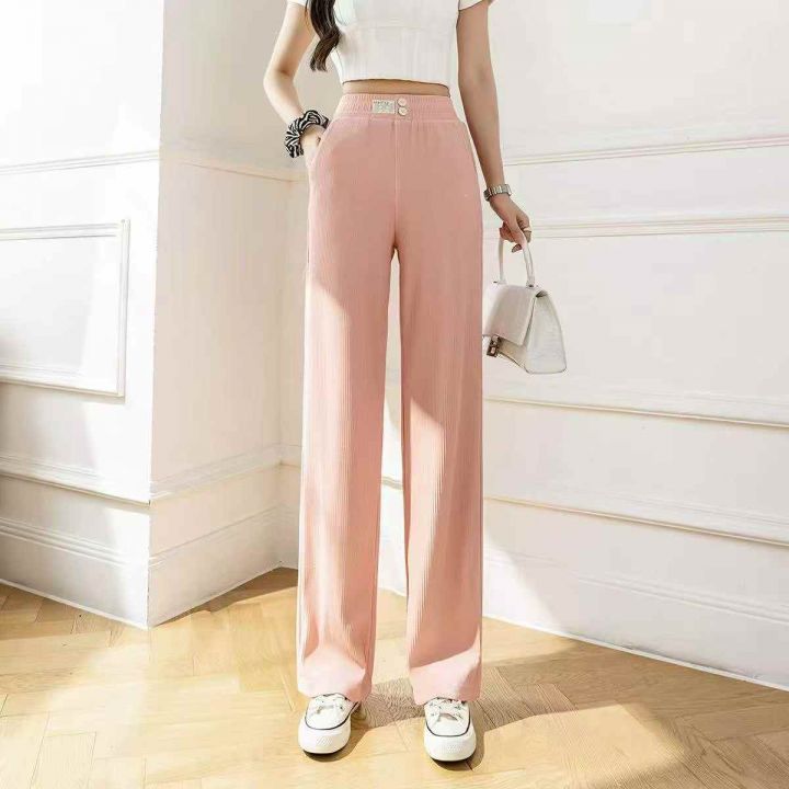 冰丝阔腿休闲裤小个子夏季高腰宽松垂感显高直筒拖地长裤小码女装码数:M-3...