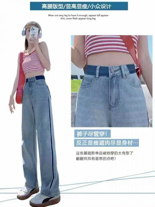 ☕️直筒牛仔裤女夏季新款高腰宽松显瘦设计感小众阔腿...