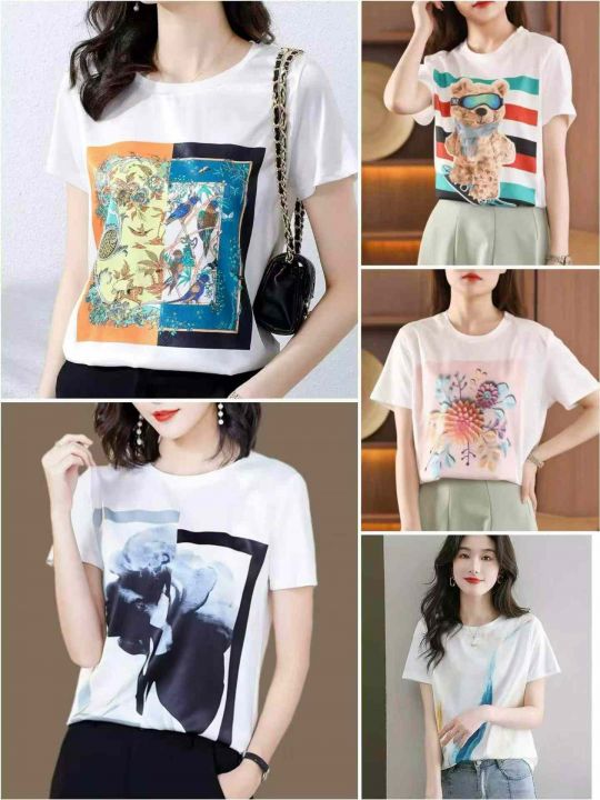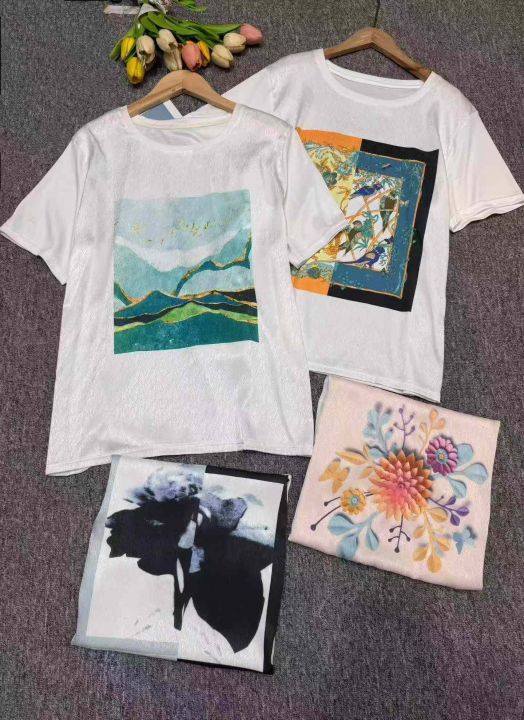 夏季热卖天丝冰凉速干韩版百搭短袖印花上衣,独立包装,后领包边,图案丰富,码S一XL数,数量2000,分货加1