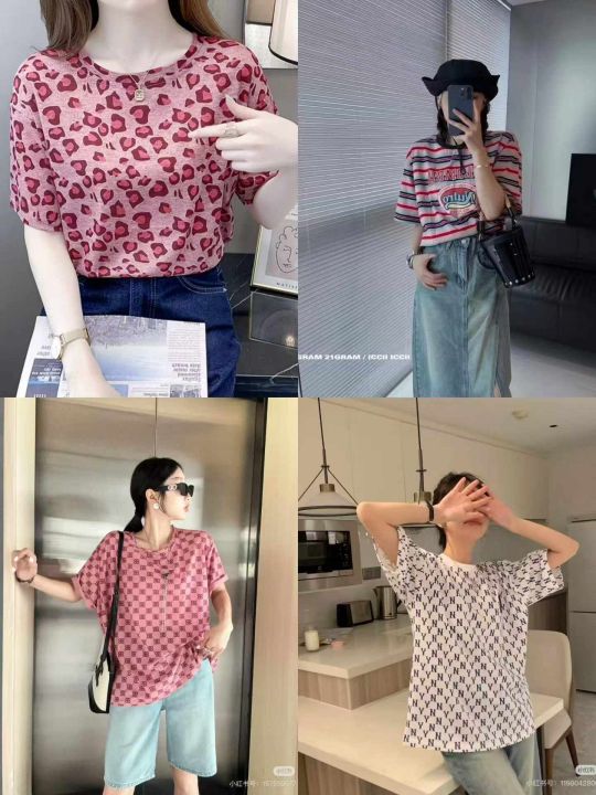 450件靓女条纹针织短袖T恤,夏季薄款,冰丝面料,穿着凉快舒服,圆领设计,...