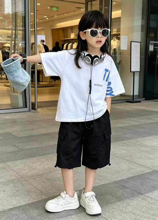 全清价6.8夏季热卖中大童冰丝棉酷炫时尚潮流休闲工装...