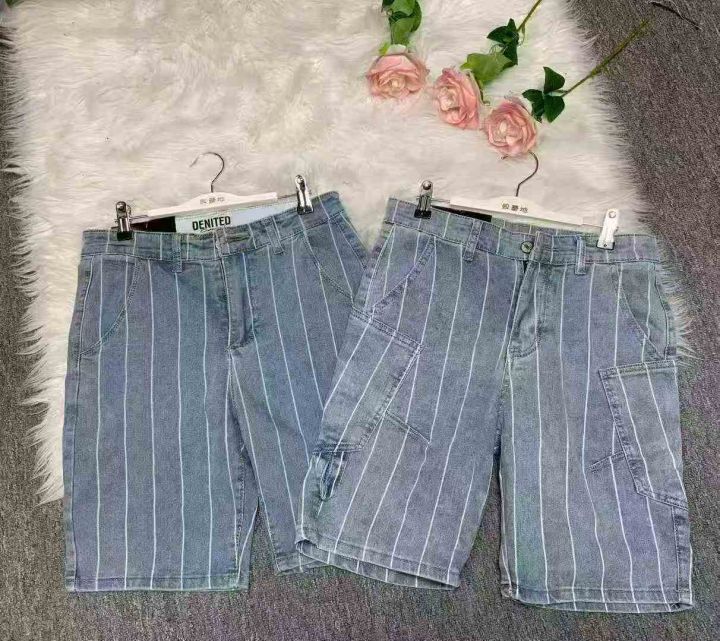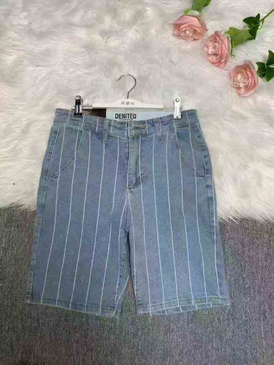弹力条纹短裤男生外穿夏季薄款休闲中裤网红潮流百搭五分牛仔裤300件,图片款式,独立包装带腰牌,尺码M~L福利价7.8元