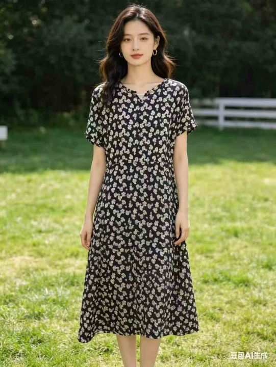 连衣裙女夏季新款印花气质显瘦温柔风碎花a字裙子