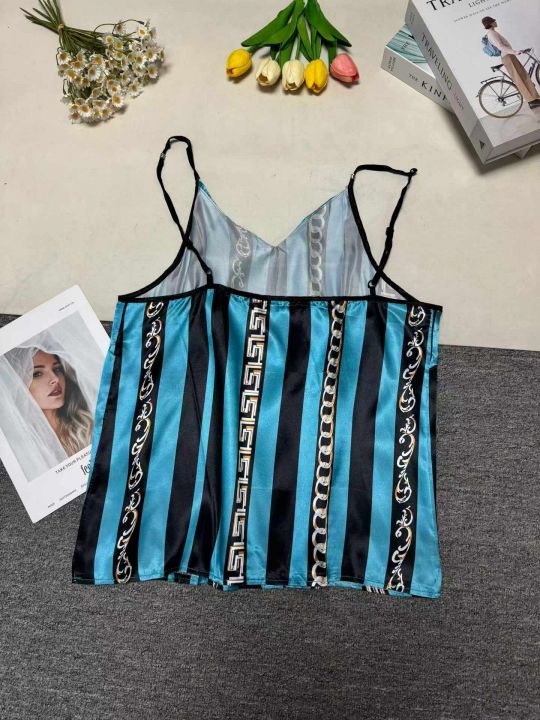 V领缎面印花吊带夏季新款内搭背心小吊带,品质好,数...
