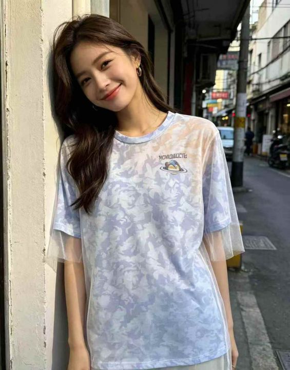 3637件,短袖新款潮宽松时尚港风上衣服网纱个性网红t恤女士ins夏季,橙色多\'独立包装\'码数S-M-XL-XXL,分货➕1,货号001#30