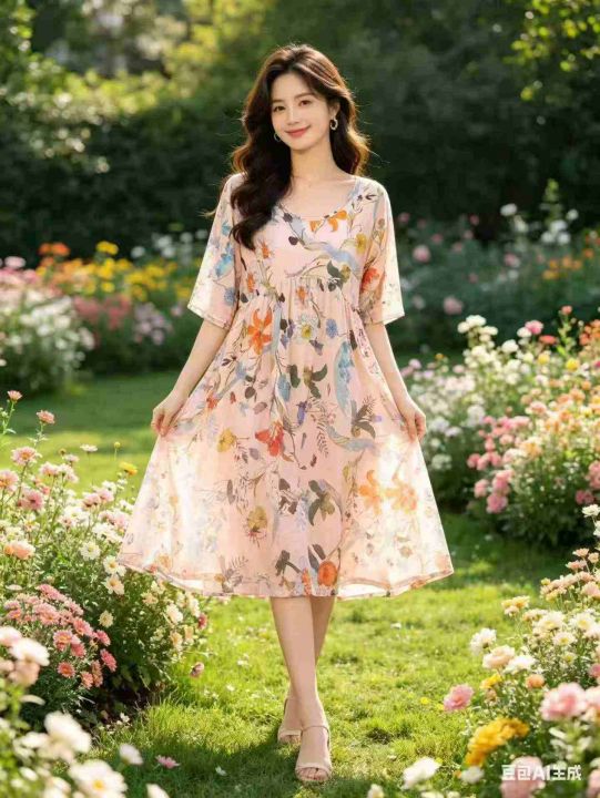 连衣裙女夏季新款印花气质显瘦温柔风碎花a字裙子码...
