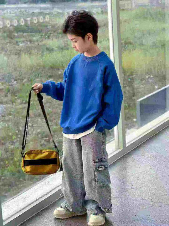 天猫在售款400件左右高品质中大童春秋款时髦痞帅休闲纯色卫衣,码数120-170,单款两色(蓝色多)后领包边到肩,质量好货品干净,十件一包装