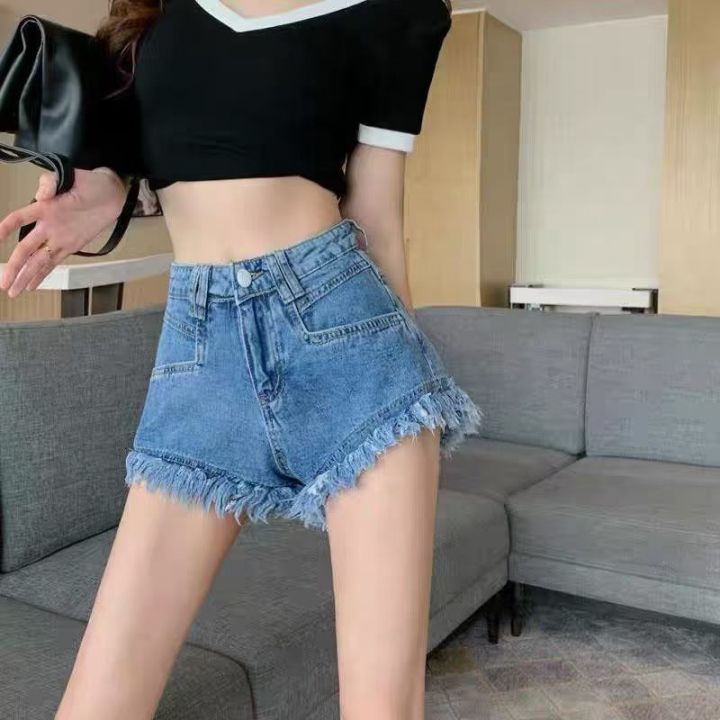☕️流苏毛边设计感牛仔短裤女夏季高腰宽松显瘦韩版A...