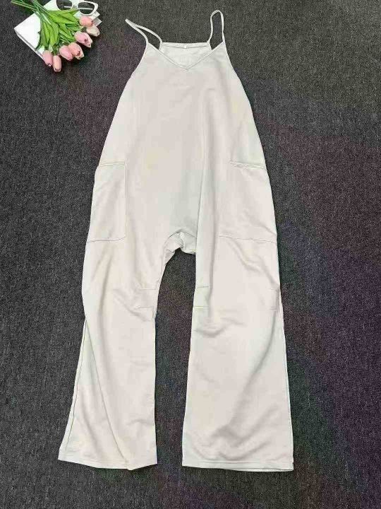 欧美大码V领胖MM浅绿色口袋宽松休闲吊带连体裤,独立包装,700件,S-2XL,全清3.9分货➕1