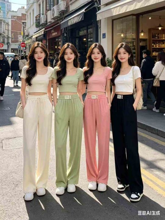 冰丝阔腿休闲裤小个子夏季高腰宽松垂感显高直筒拖地长...