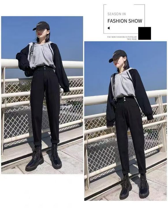 ☕️哈伦牛仔裤女高腰显瘦直筒宽松韩版新款老爹萝卜裤...