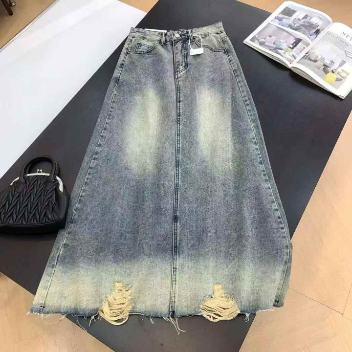 高品质牛仔长裙147条全清11.8元,码数S到XL,图9有码数清单,正品独立包装,浅蓝色牛仔半身裙女夏季新款宽松梨型身材开叉高腰中长裙
