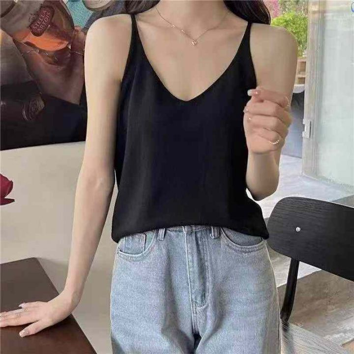 清3.8纯欲v领吊带背心新款外穿修身美背上衣打底无袖百搭内搭带夏季T恤,数...