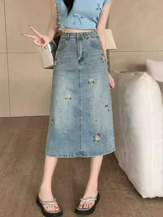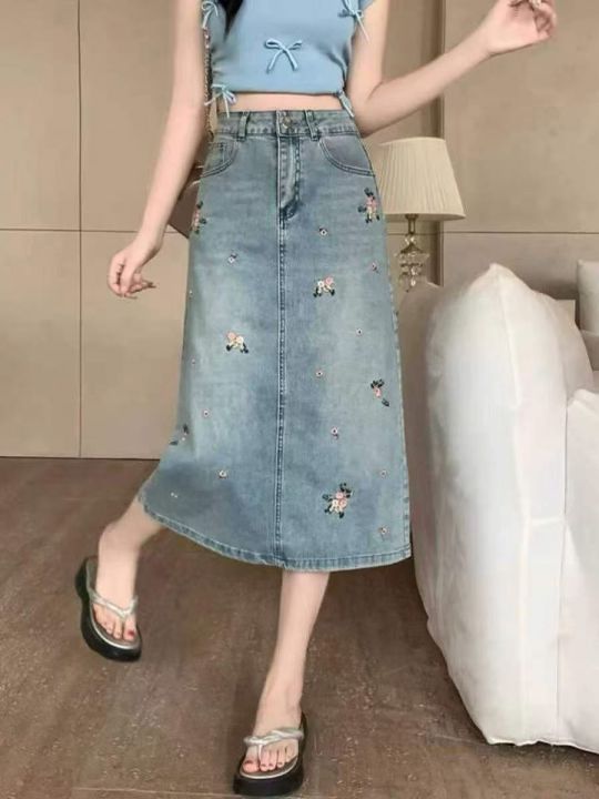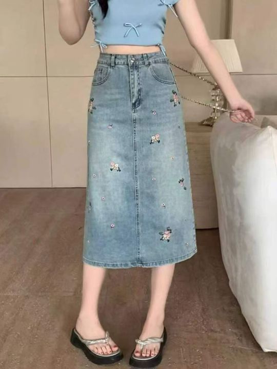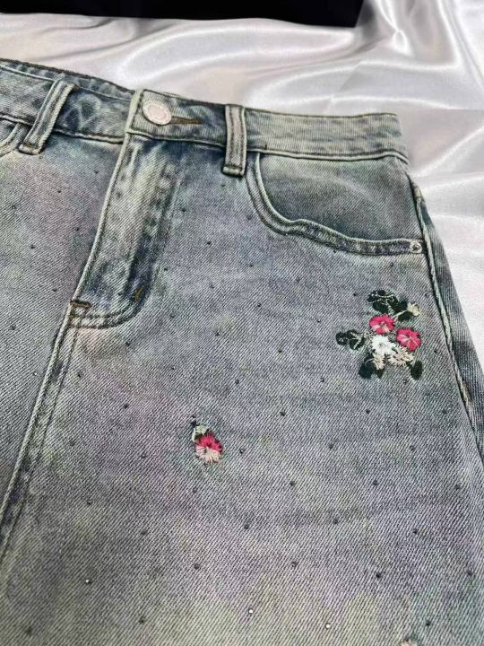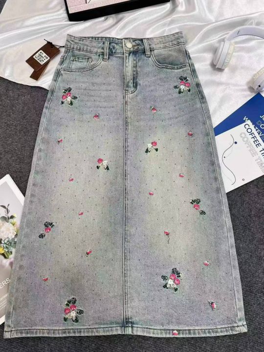 重工烫钻刺绣牛仔长裙32条全清15元,码数S到XL,图9有码数清单,正品独立包装,碎花刺绣显瘦中长款半身裙女春夏直筒牛仔裙设计包臀裙