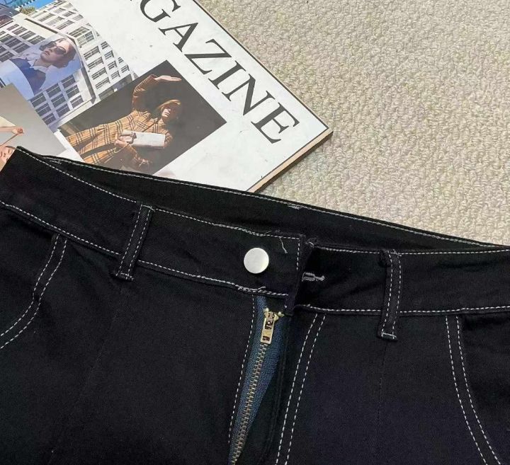 春夏季新款网红复古微胖MM弹力窄版直筒牛仔裤,独立包...