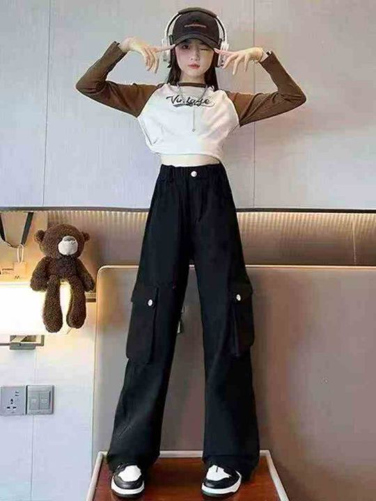 全清价11.8女中大童宽松潮牌多口袋休闲裤春运动棉工装裤,独立包装,酒红色...