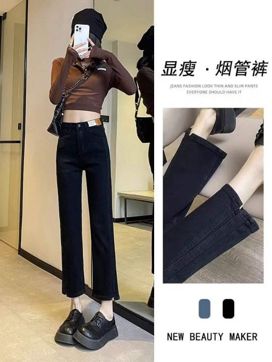 春夏季新款高弹力洗水棉设计款直筒牛仔烟管裤,独立包...