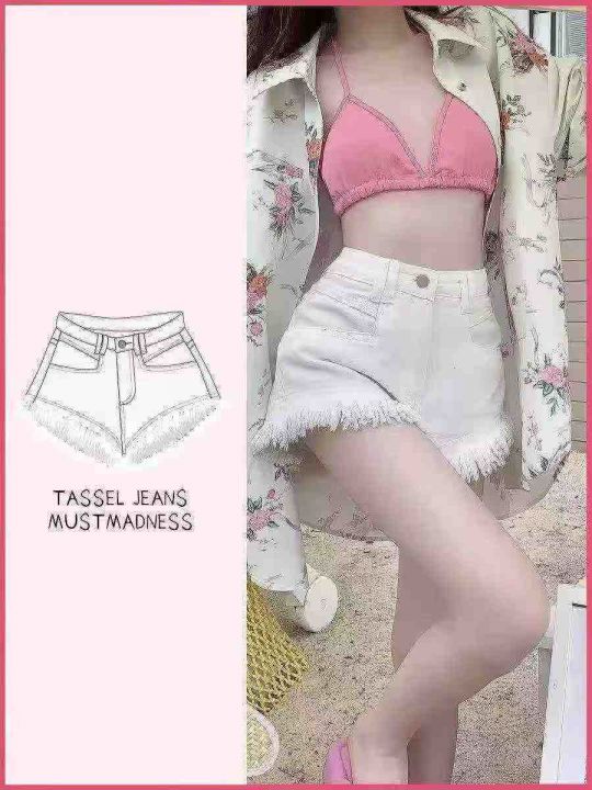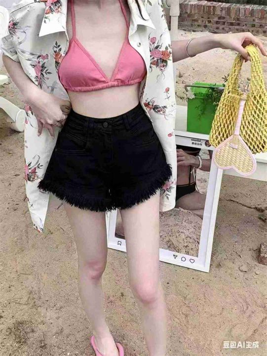 ☕️流苏毛边设计感牛仔短裤女夏季高腰宽松显瘦韩版A...