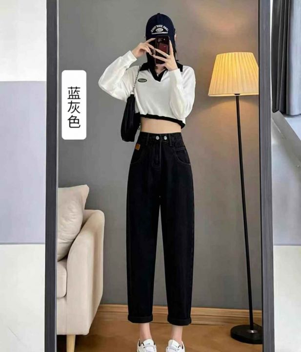 ☕️哈伦牛仔裤女宽松显瘦春夏高腰皮牌收腹遮胯复古老...