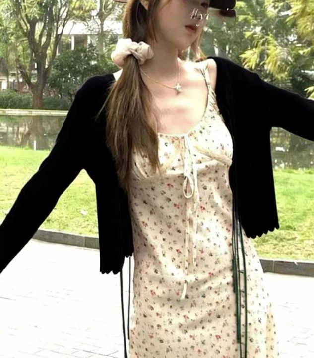 春夏季新款网红复古木耳边绑绳设计款针织长袖毛衣开衫...