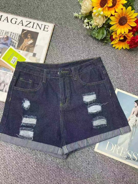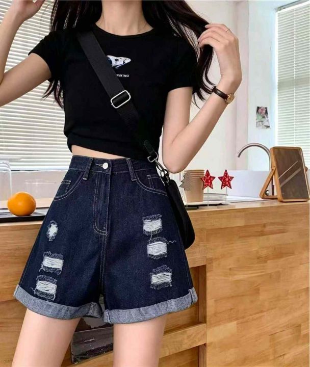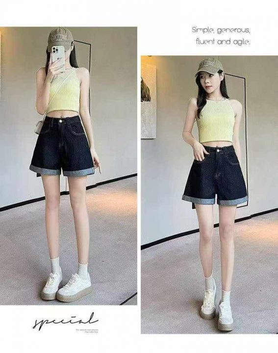 夏季新款网红复古蓝洗水棉阔腿牛仔短裤,独立包装带腰...