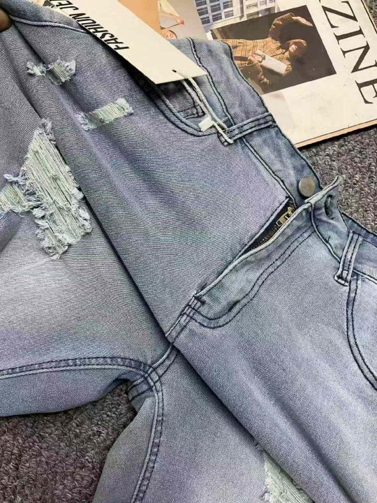☕️弹力破洞牛仔裤女新款高腰显瘦弹力紧身乞丐小脚铅笔裤588条全清9.8元,...