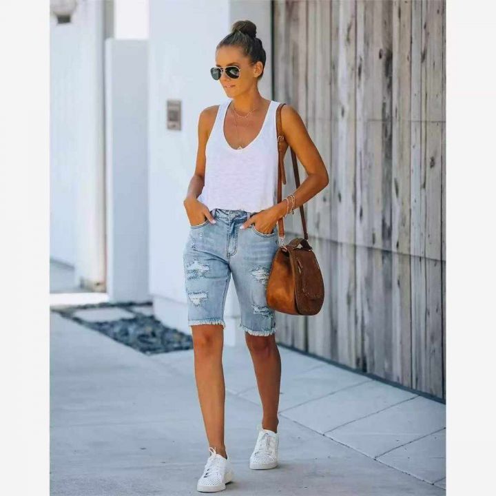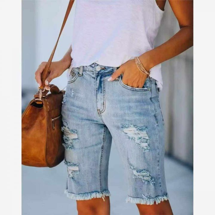 夏季新款品牌外贸原单美式高弹力牛仔中裤,独立包装带...