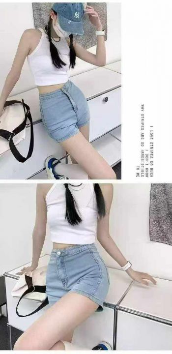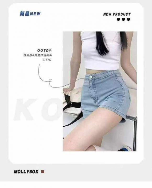 夏季新款高腰辣妹性感弹力显瘦洗水棉牛仔短裤,独立包...