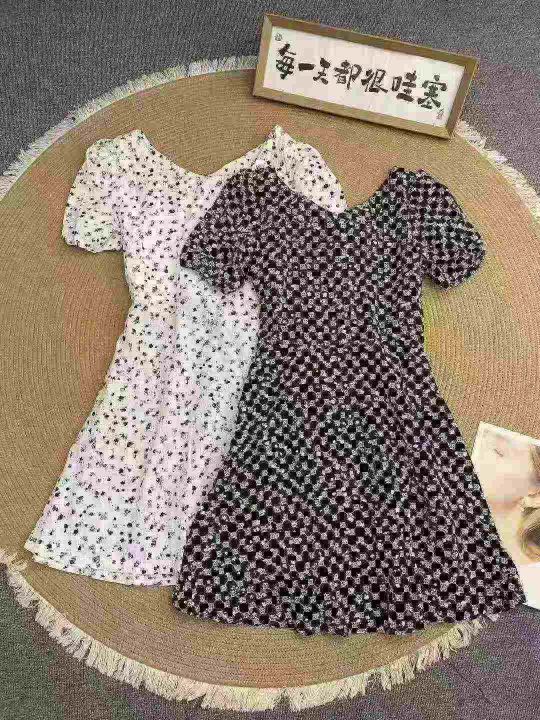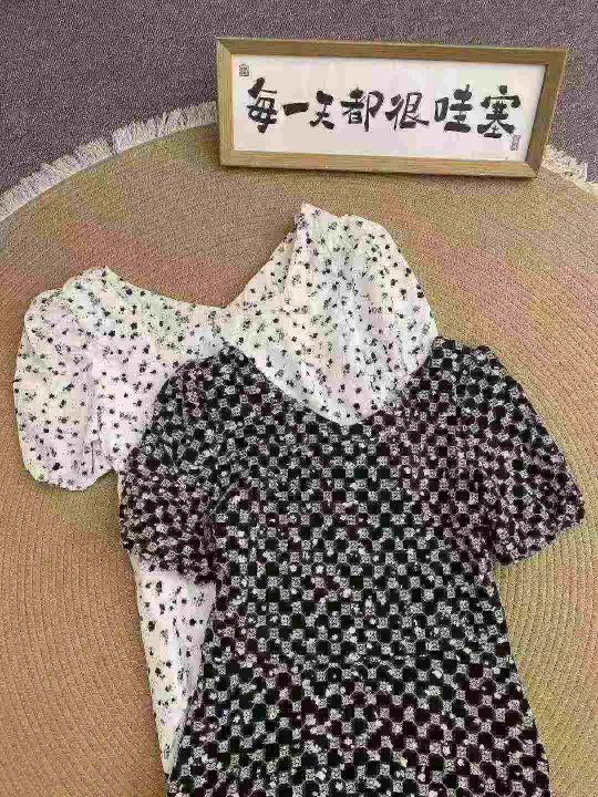 法式方领泡泡袖连衣裙96件8.5,
