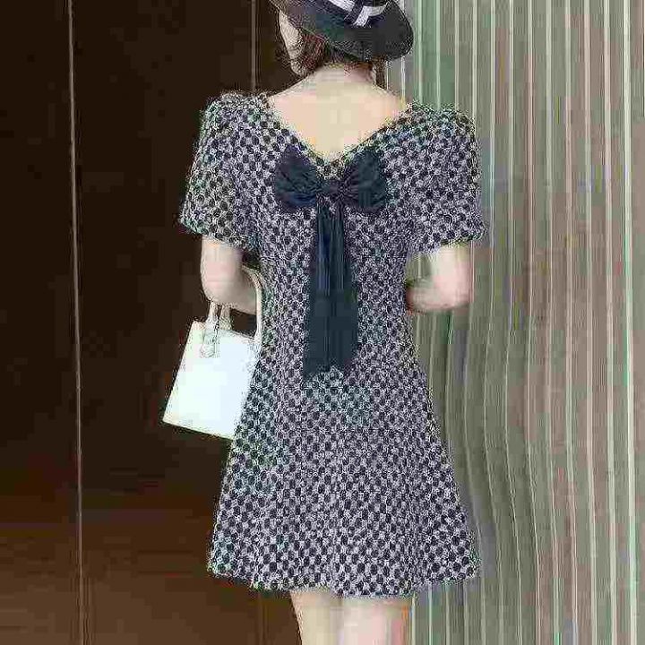 法式方领泡泡袖连衣裙96件8.5,后蝴蝶结设计,侧腰拉...
