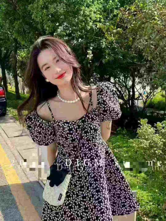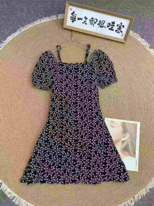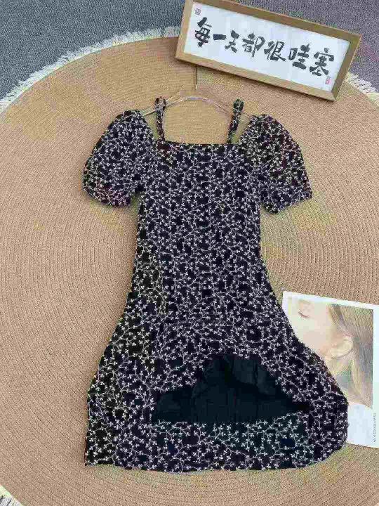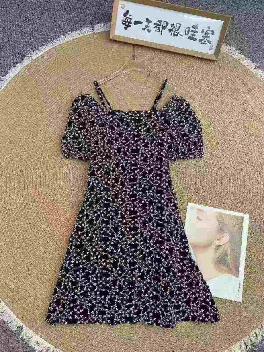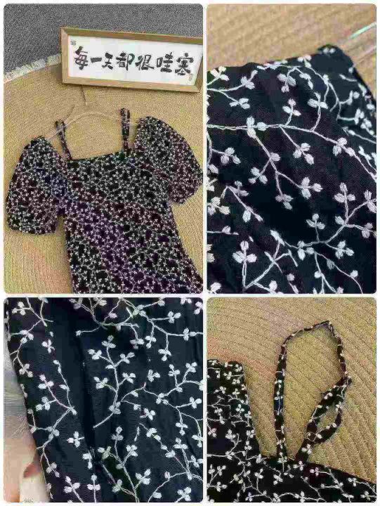 绣花泡泡袖连衣裙143件8.5,一字领,有内衬,侧腰拉链...