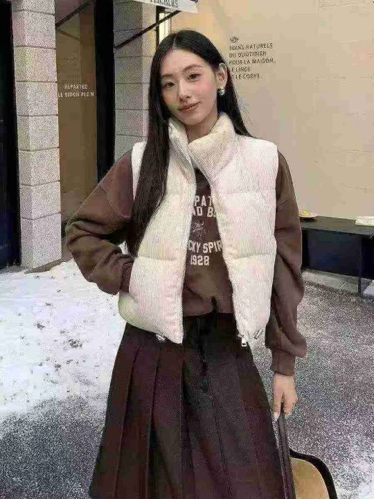876件秋冬季显瘦叠穿灯芯绒加厚短款马甲棉服,面料柔...