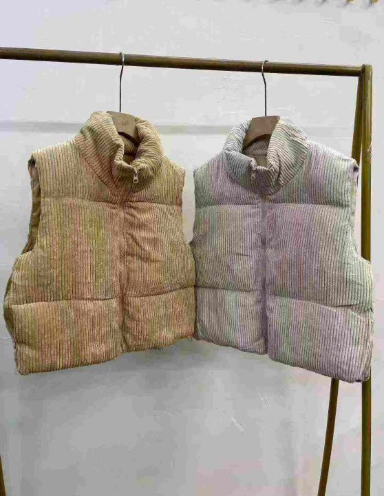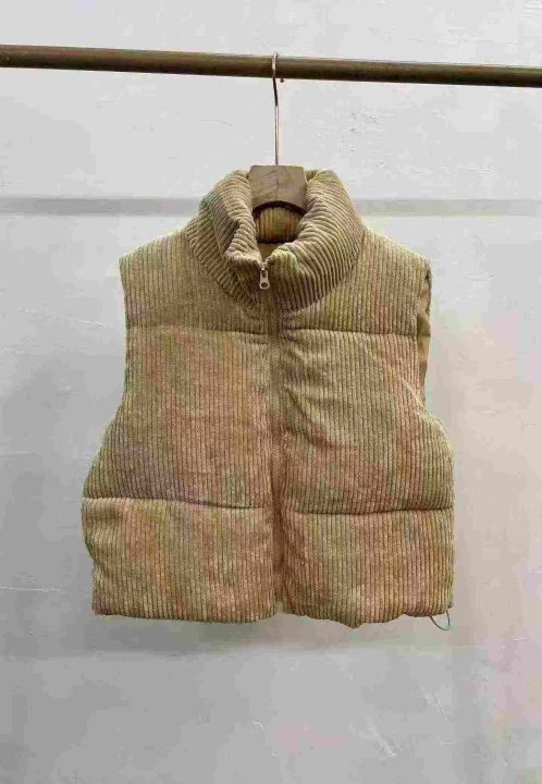 876件秋冬季显瘦叠穿灯芯绒加厚短款马甲棉服,面料柔软,保暖舒适,主要以黄色为主,S一XL,压缩包装加外包装。全清9.8